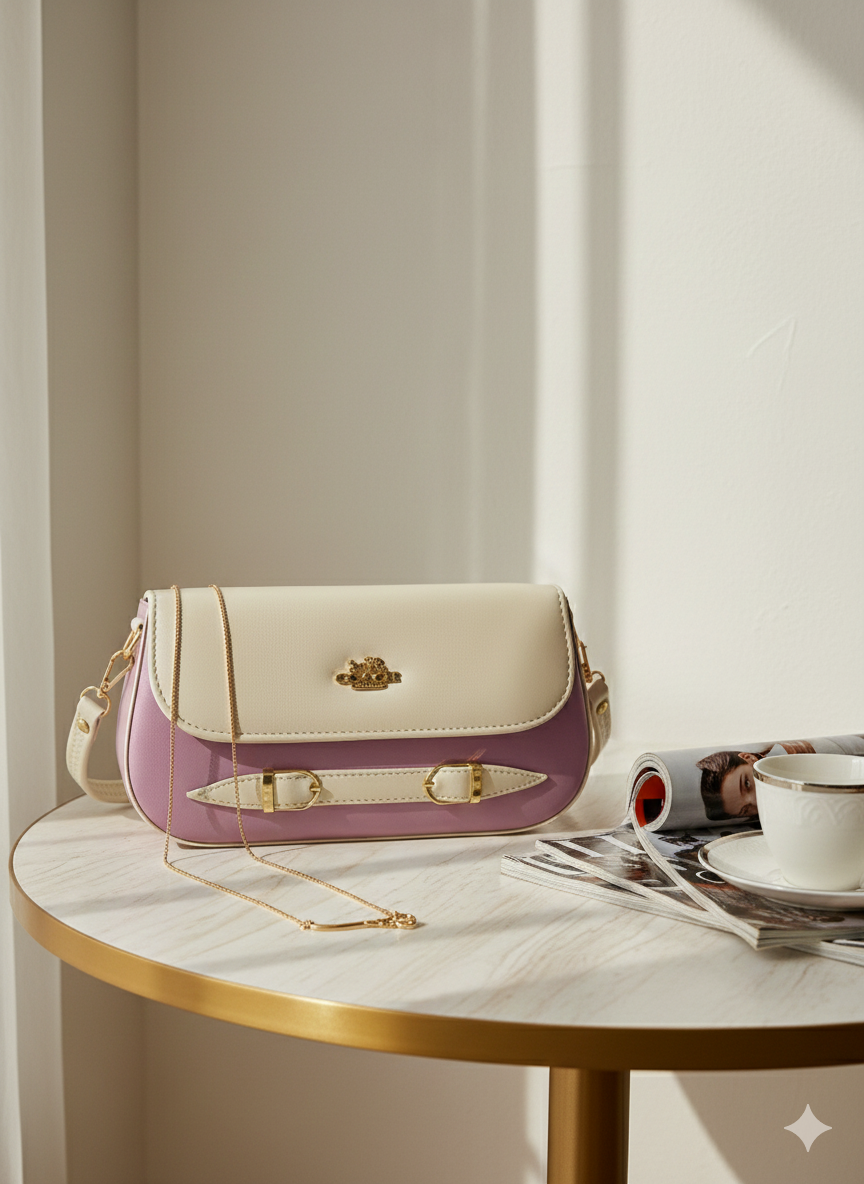 & Free ShippingThe Aflah Pastel Luxe Sling Bag is designed for women who love subtle luxury and effortless style. Crafted from high-quality vegan leather, this bag features a beautiful cream and blush-pink color combination that gives a soft, feminine, and premium look.